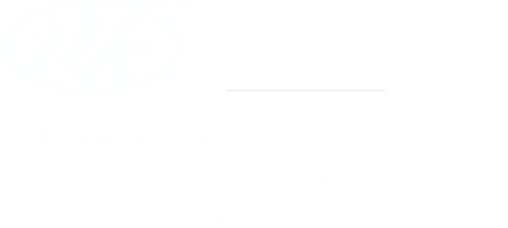 UK株式会社は、福岡県北九州市を拠点に、重量機械据付け一式、製缶工事一式、鍛冶工事一式、足場一式など幅広い施工に対応している会社です。長年培ってきた現場での経験と確かな技術力をもとに、自社施工による安全管理を徹底し、お客様の大切な設備や建物を責任を持ってお守りいたします。